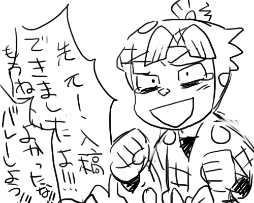 あ、内容は結局32~6ページ漫画が間に合わなくて没ったので各委員会にがんばってもらって9ページ漫画になりました。普通にネタを考えても出ないのに、土壇場になって考えると出るわ出るわ。それが面白いか面白くないかは別として。没ったものは次回があれば出したいなーと思ってます。
